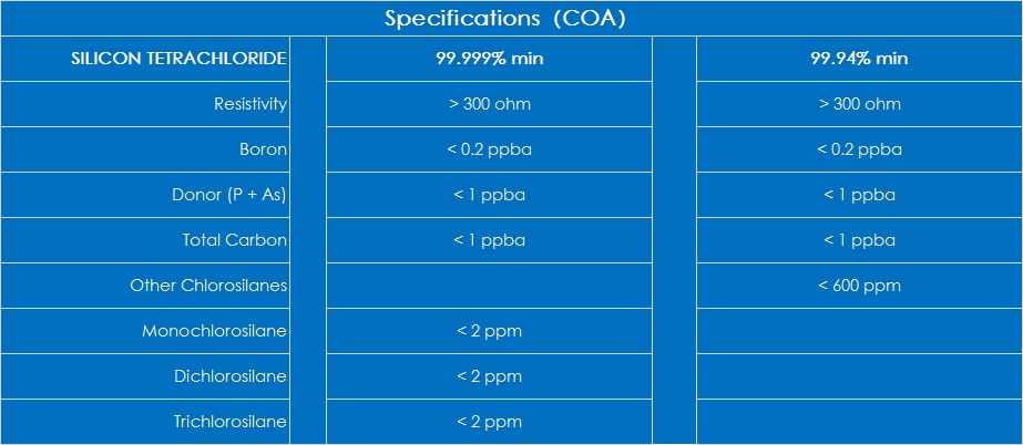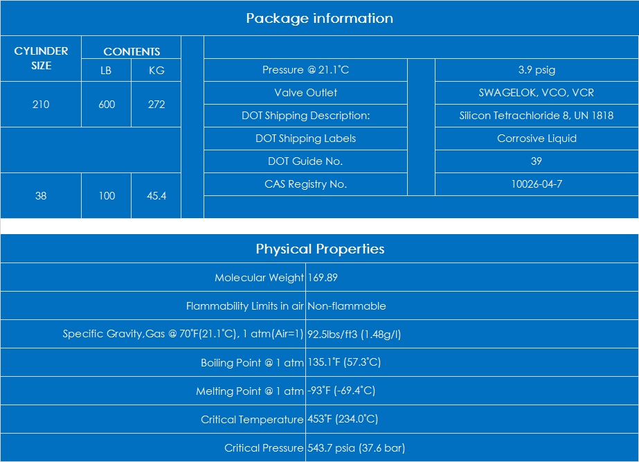 High purity Silicon tetrachloride(SiCI4) is a colorless and transparent liquid, slightly lower purity yellowish or yellowish, suffocating odor.