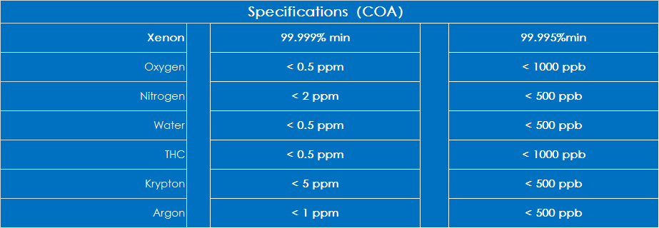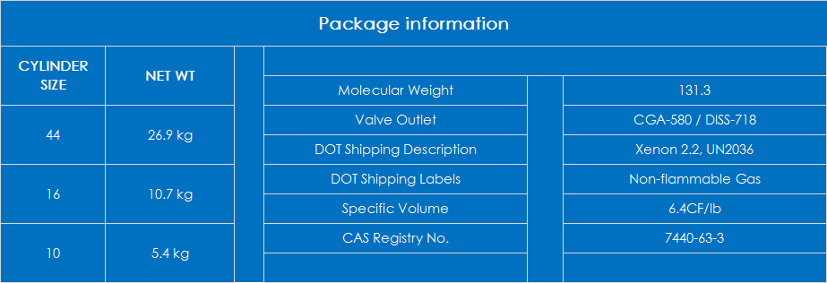 Xenon(Xe) is an inert gas with a larger atomic number of elements, a larger atomic radius. Atomic number 54, located in the fifth cycle group 18, is a rare gas, colorless, odorless, odorless, density 5.887 kg / cubic meter, melting point -111.9 ℃, boiling point -107.1 ± 3 ℃, 20 ℃ per liter of water soluble 110.9 ml (volume). Can absorb X-rays.