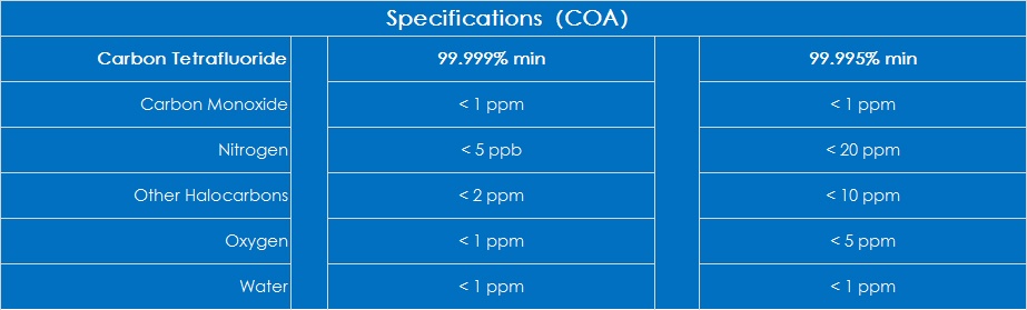 Carbon tetrafluoride(CF4), also known as tetrafluoromethane, Freon-14 and R 14, is a halogenated hydrocarbon (chemical formula: CF4). It can be considered as a halogenated hydrocarbon, methyl halide, perfluorocarbon, can also be regarded as an inorganic compound. At minus 198 ° C, the carbon tetrafluoride has a monoclinic structure with lattice constants of a = 8.597, b = 4.433, c = 8.381 (.10-1 nm) and β = 118.73 °