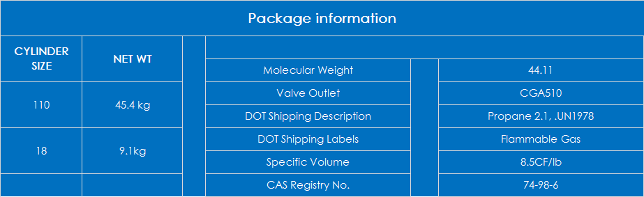 Propane(C3H8), tri-alkanes, the chemical formula of C3H8, the structure of simple formula CH3CH2CH3. It is usually in the gaseous state, but it is generally transported to the liquid state after being compressed. After crude oil or natural gas treatment, propane can be obtained from the refined oil. Propane is often used as a fuel for engines, grilled foods and domestic heating systems.